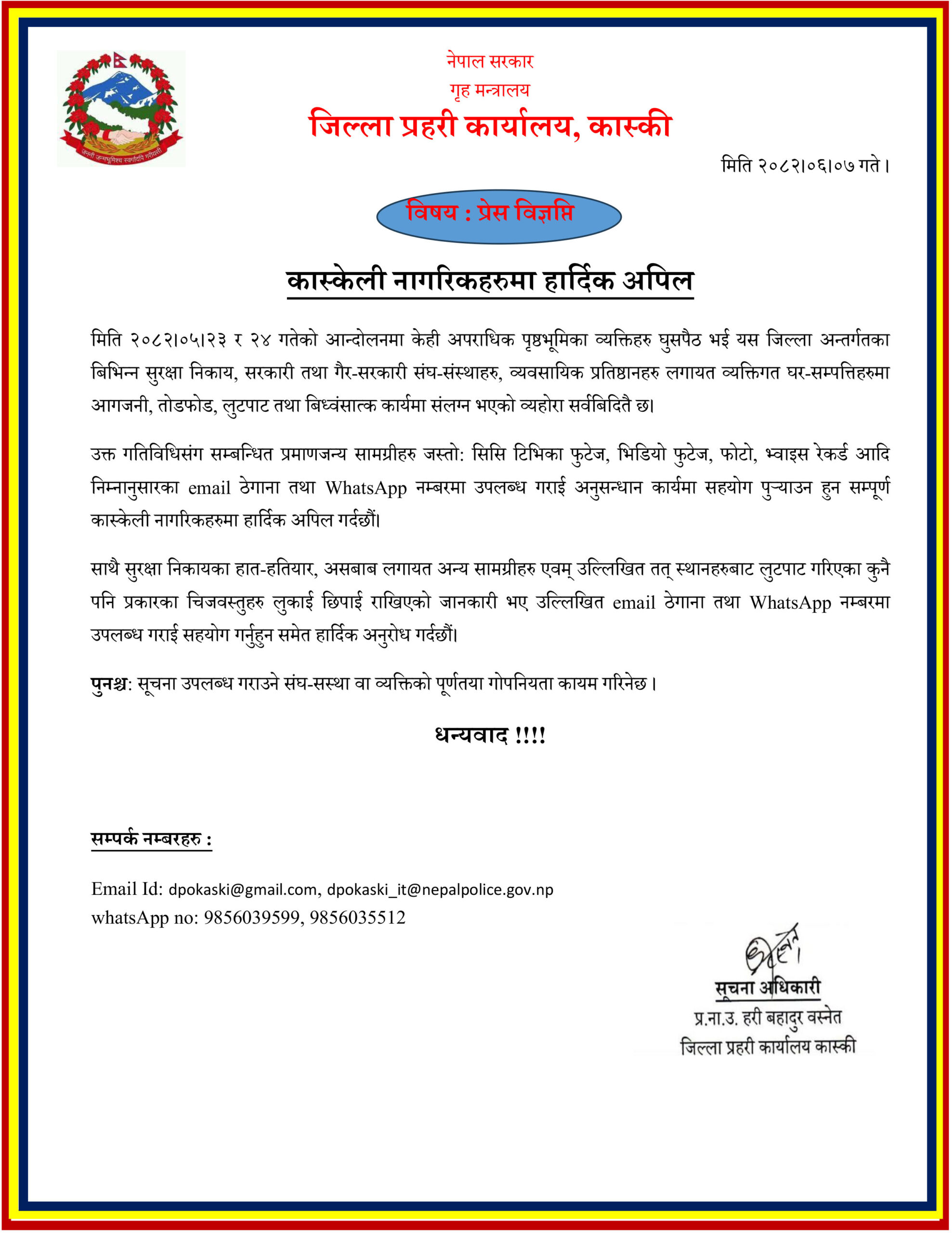 एसोसियसनका केन्द्रिय अध्यक्ष माइकल देवकोटाले दन्त स्वास्थ्य बारे गण्डकी प्रदेशमा सचेत र सचेतना गराउन अनुरोध गरे।विद्यालयमा दन्त स्वास्थ्य पुराउदा वालवालिकाको मुख स्वास्थ्य राम्रो हुने बताए।एसोसियसनका महासचिव डेन्टल एसोसियसनका विगत र वर्तमान गतिविधि बारेमा भनाई राखेका थिए।